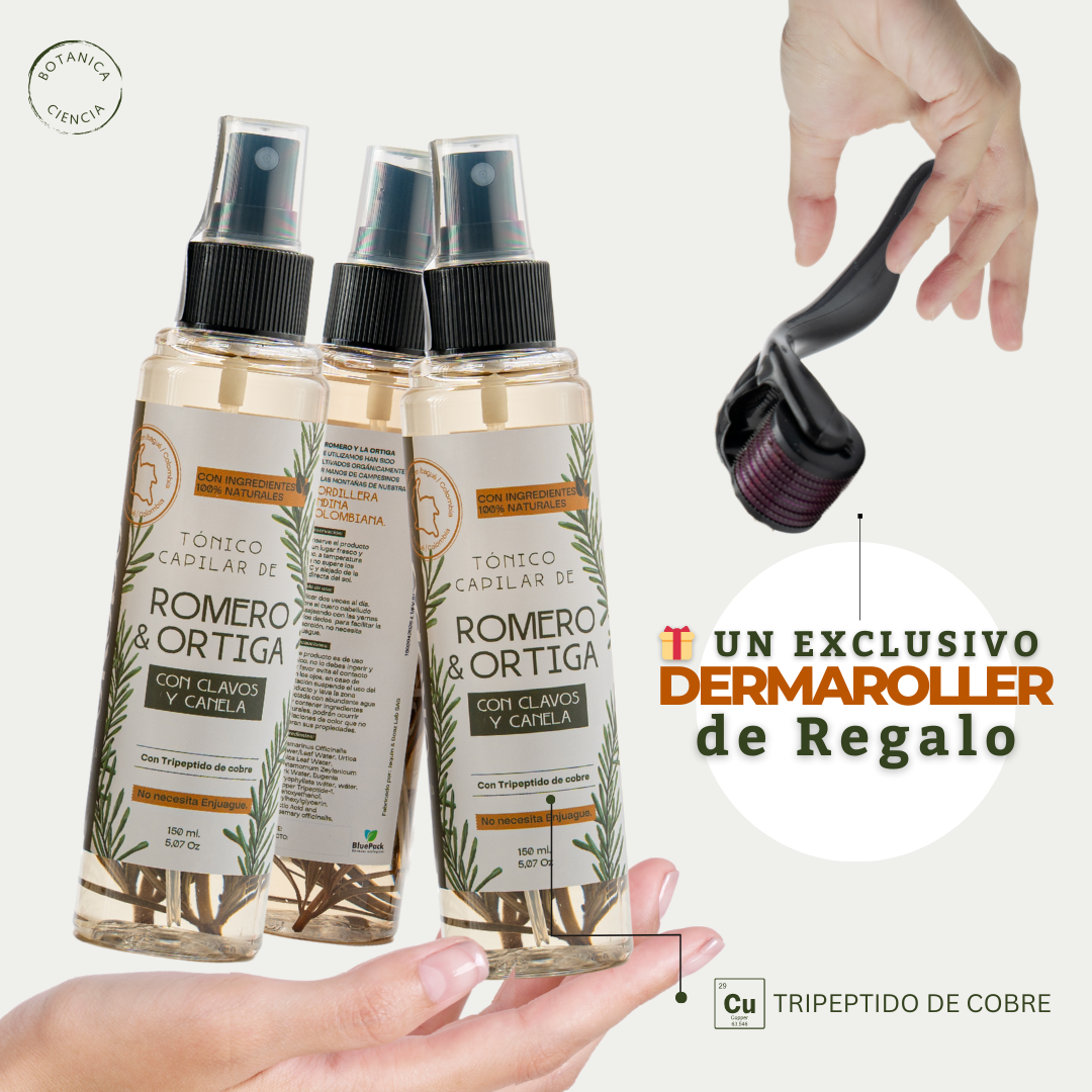 3 Tónicos Capilares Romero & Ortiga (con Clavo, Canela y Tripéptido de Cobre)